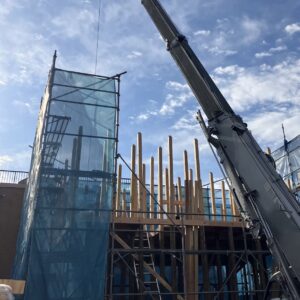そして、沢山の職人さんに、クレーン車も来て、一気に屋根まで作りました。