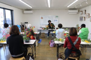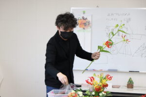 event 「お正月フラワーアレンジメント講習会」開催報告 昨年12月25日に、毎年恒例の「お正月フラワーアレンジメント講習会」を開催しました。 講師はフラワーショップバディー(高幡不動駅前)の田﨑先生。 今年は、グロリオサをアクセントにした華やかなアレンジを楽しみました。 田﨑先生の楽しいお話しと素敵なお花の香りに包まれて、あっという間の1時間でした。 前の記事 次の記事 一覧へ戻る