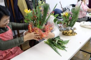 event 「お正月フラワーアレンジメント講習会」開催報告 昨年12月27日に、毎年恒例の「お正月フラワーアレンジメント講習会」を開催しました。 講師はフラワーショップバディー(高幡不動駅前)の田﨑先生。 今年は籠をお正月っぽい包装紙で包んで、華やかなアレンジメントとなりました。 田﨑先生の楽しいお話しと素敵なお花の香りに包まれて、あっという間の1時間でした。 前の記事 次の記事 一覧へ戻る