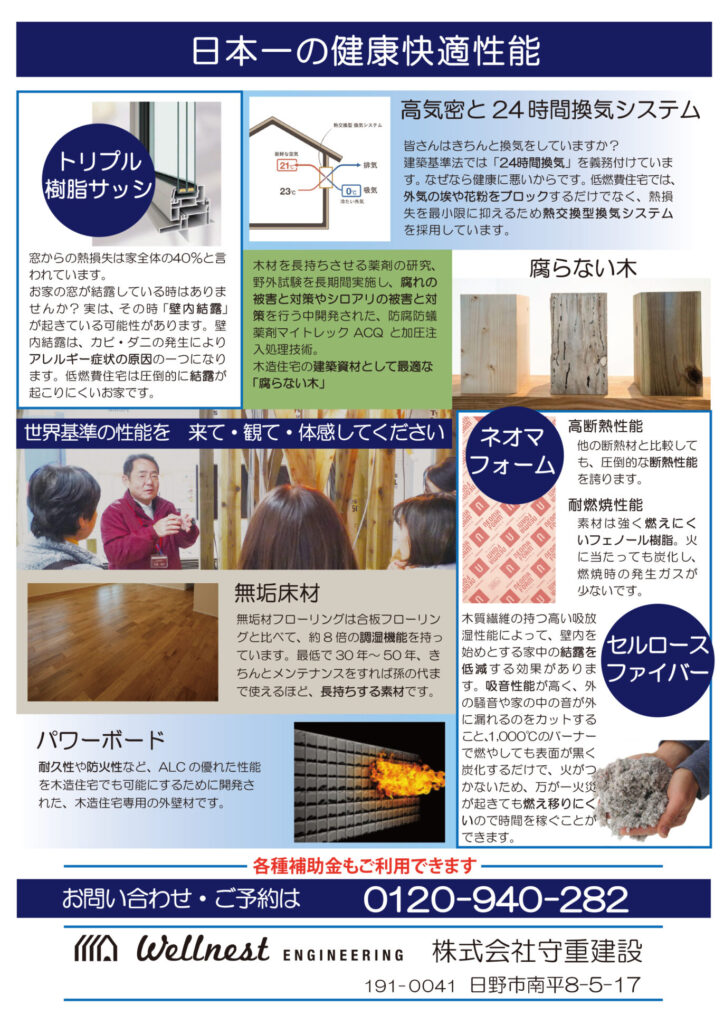 event 完成現場見学会開催します! 2月に構造見学会を開催しましたお家が完成しました! エアコン1台で驚くほど快適な室内環境を、ぜひ体感しにいらしてください! 日時:4月11日(土)・12日(日)10:00~17:00(受付は16:00まで) 会場:日野市平山3丁目(詳しい住所はご予約時にお伝えいたします) 完全予約制ですので、ご予約をお願いいたします。 お問い合わせ・ご予約は 0120-940-282 までお願いいたします。 前の記事 一覧へ戻る